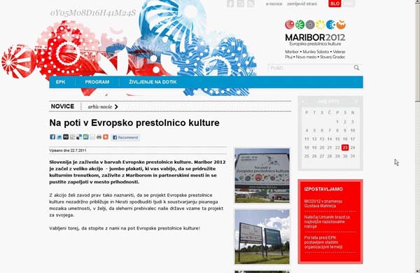 Slovenija je zaživela v barvah Evropske prestolnice kulture. Maribor 2012 je začel z veliko akcijo - jumbo plakati, ki vas vabijo, da se pridružite kulturnim trenutkom, zaživite z Mariborom in partnerskimi mesti in se pustite zapeljati v mesto prihodnosti.