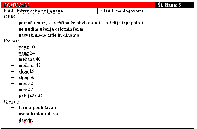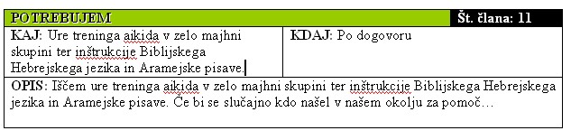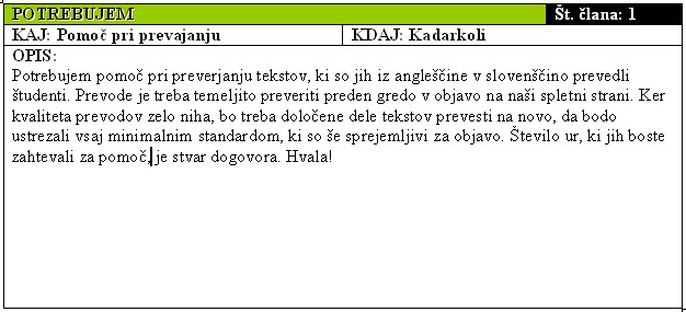 konkretnih ponudb in povpraševanj po storitvah, znanju in