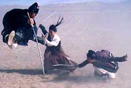 Na poti do spolnega odnosa je ponavadi posredi kung fu, vsakršno razmerje se začne z predpostavko, če si boljši od mojega kung fuja me lahko imaš. Filozofija kung fuja se vmešava v življenje, da bi jih bolje posnemala od znotraj in minirala od zunaj. Tipičen je prizor, ki združuje eno in drugo, prijatelja med bojem preizkušata vino ali opravljata kakšno drugo povsem vsakdanje opravilo, ali pa mojster se med intenzivnim branjem ne da motiti izzivalcu in med bojem nadaljuje branje, akcija in počitek v enem. Krog se sklepa med navadnim bistvom spolnosti in bistvom kung fuja, pedagogika in vaje, med obvladovanjem kodov borbe in njihovo spojitvijo s kodi običajnega življenja. Kung fu tako ni zgolj odnos telesa do drugega telesa ali okolja, temveč način življenja (Tesson, Assayas 2000).